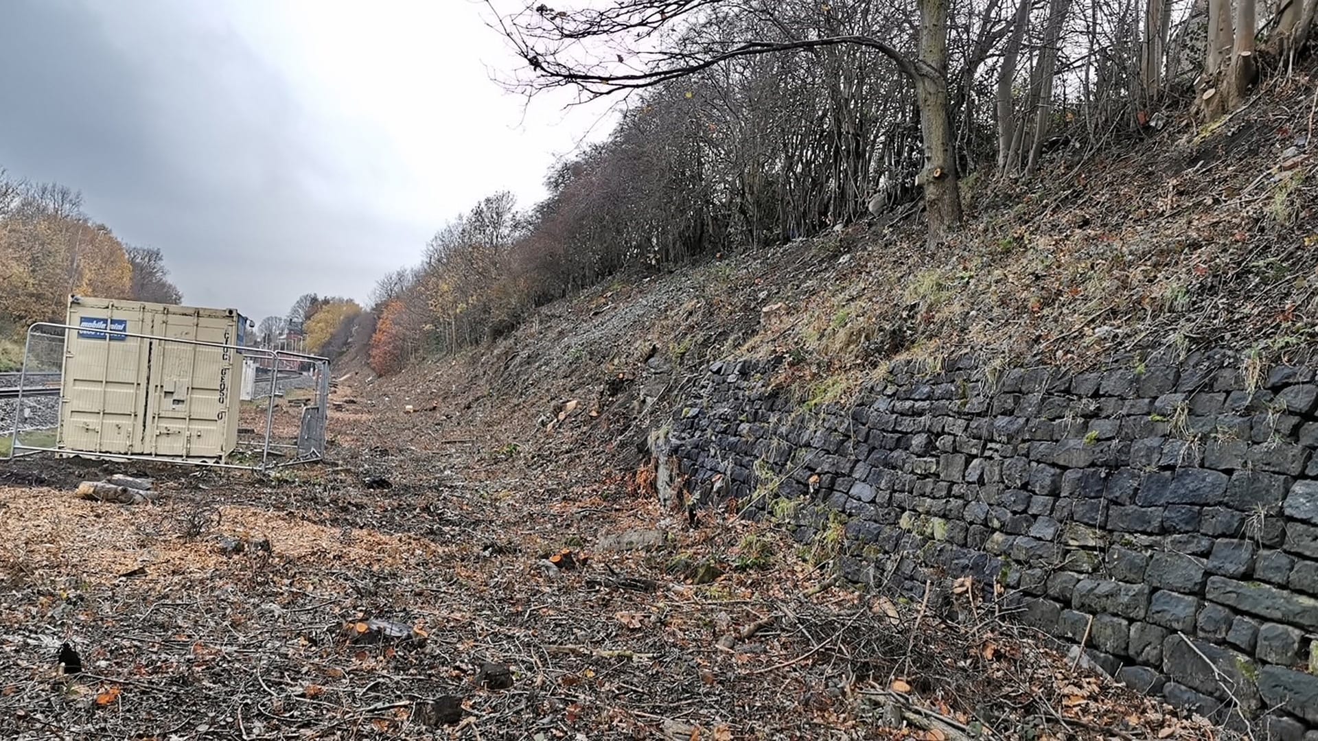 Our team began by removing substantial vegetation that was obstructing the platform cutting. Once cleared, we moved to drilling works on the retaining walls. Using a Marini drill rig mounted on a Road Rail Vehicle (RRV) during Saturday night possessions, alongside hand-operated pneumatic drills, we installed dowels and anchors to support the netting. Anchors were resin-bonded in place, before netting was lowered down the wall face and secured with top and bottom cables fixed with D-shackles.